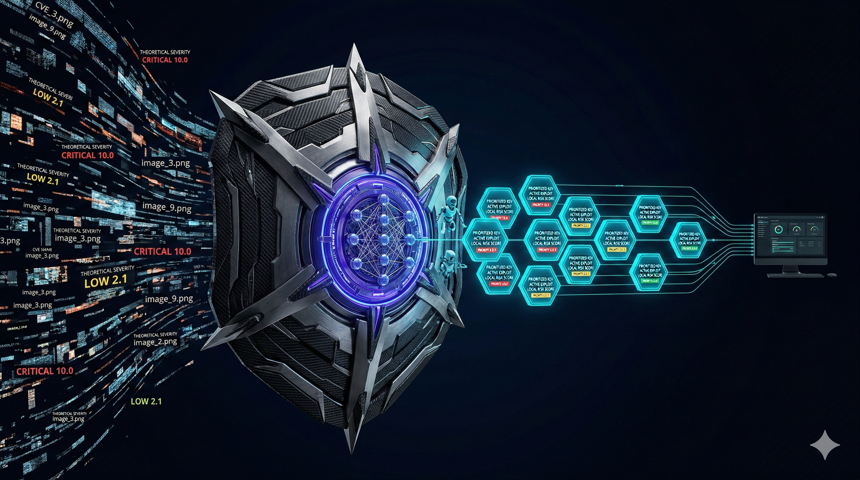 A deep dive into the three-layer scoring model that replaces CVSS-only prioritization.